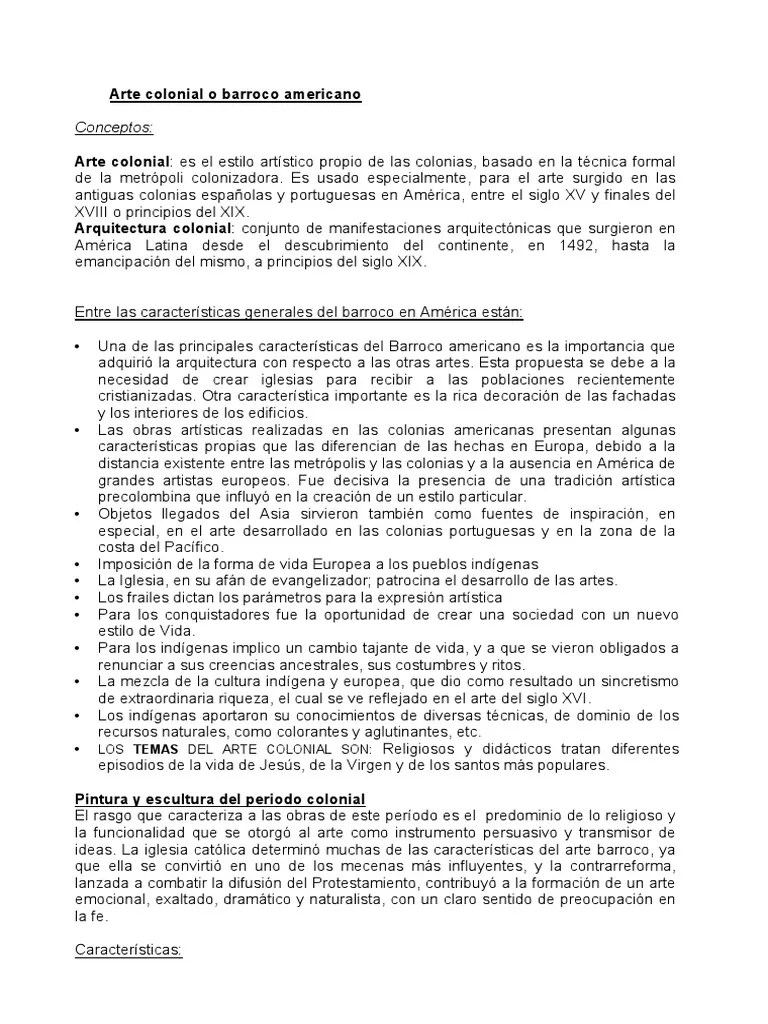 El arte colonial americano se desarrolla durante la dominación española... . Las raíces del barroco americano están en el barroco europeo, estilo artístico que.